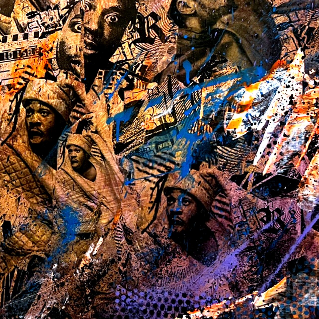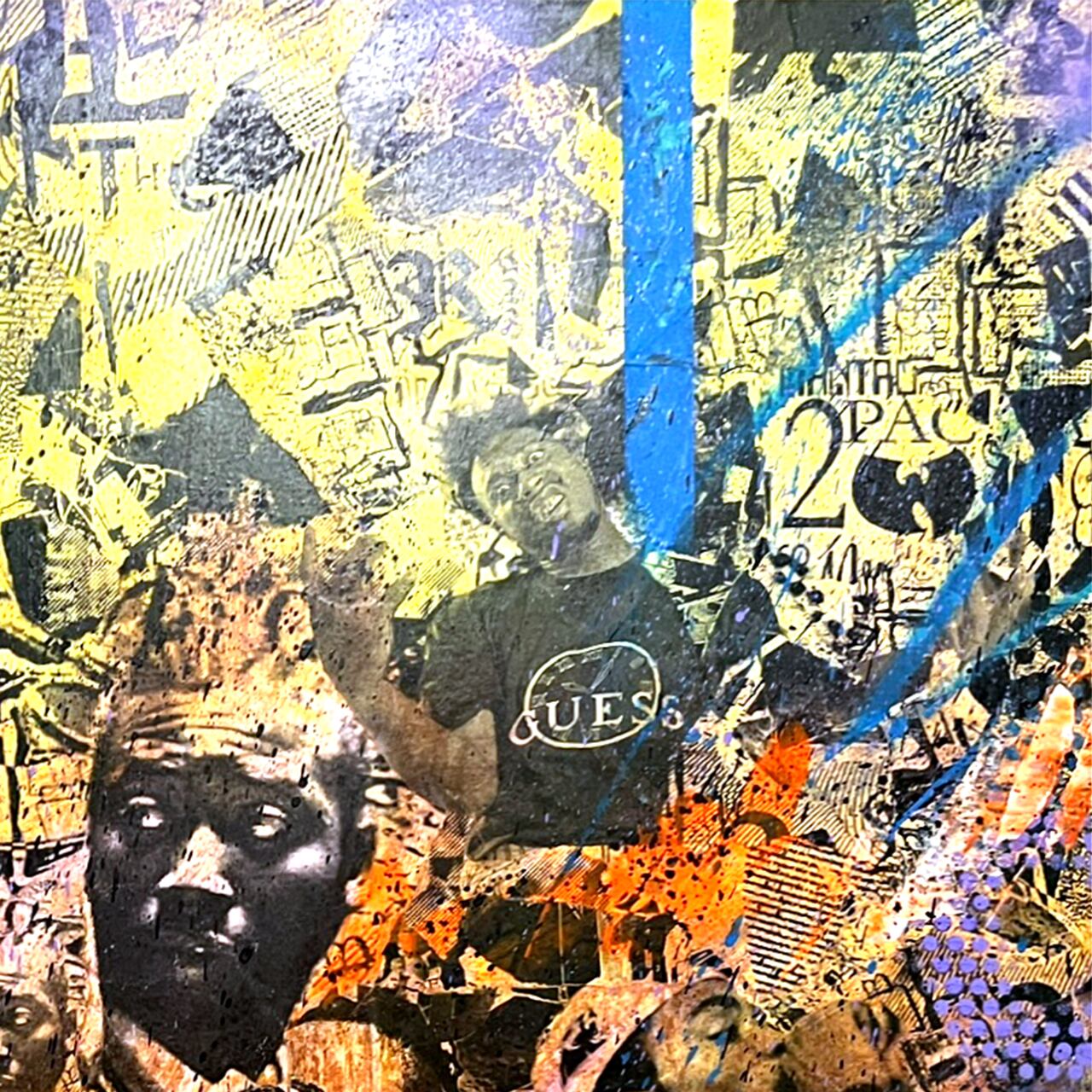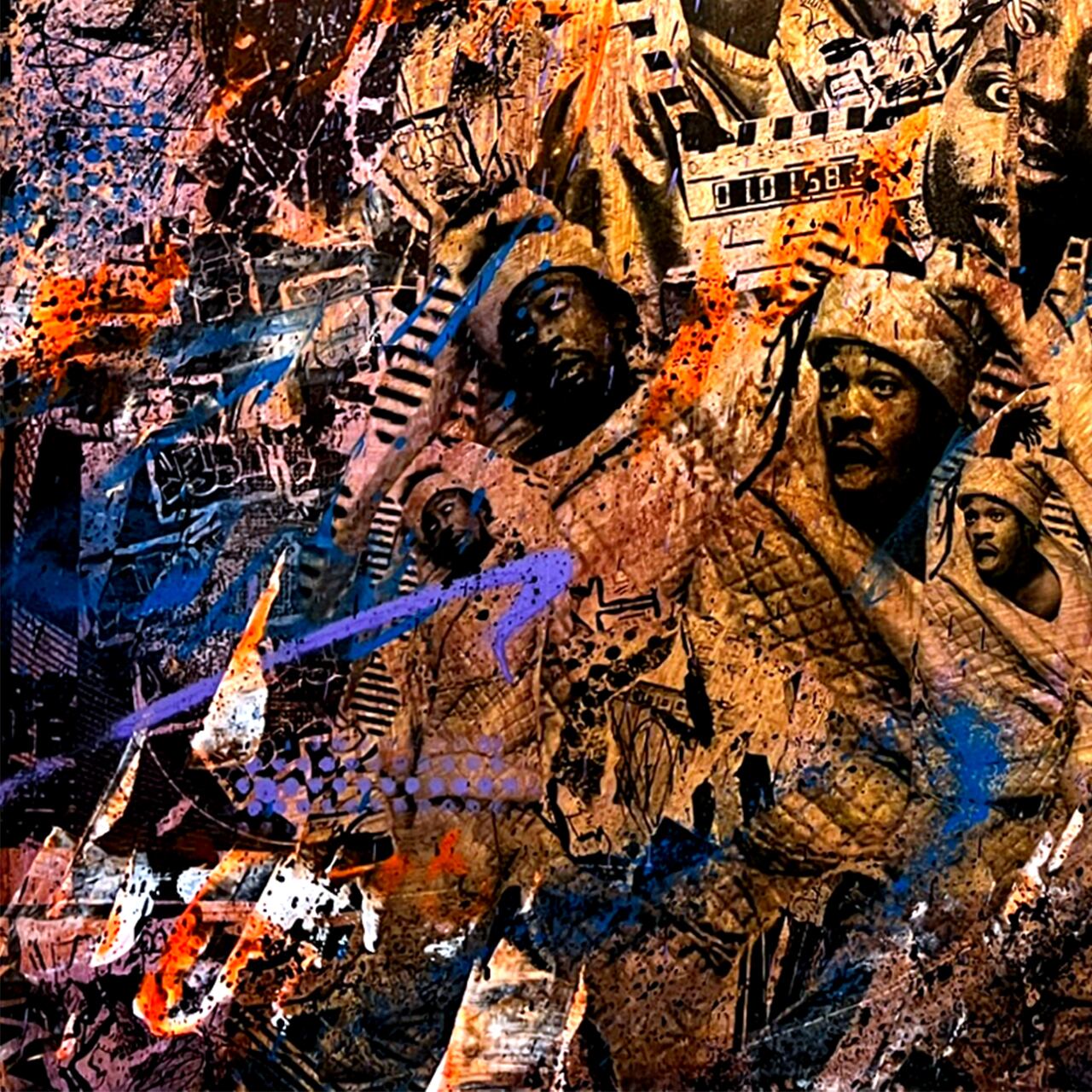 Acrylic paint & collage on wooden panel