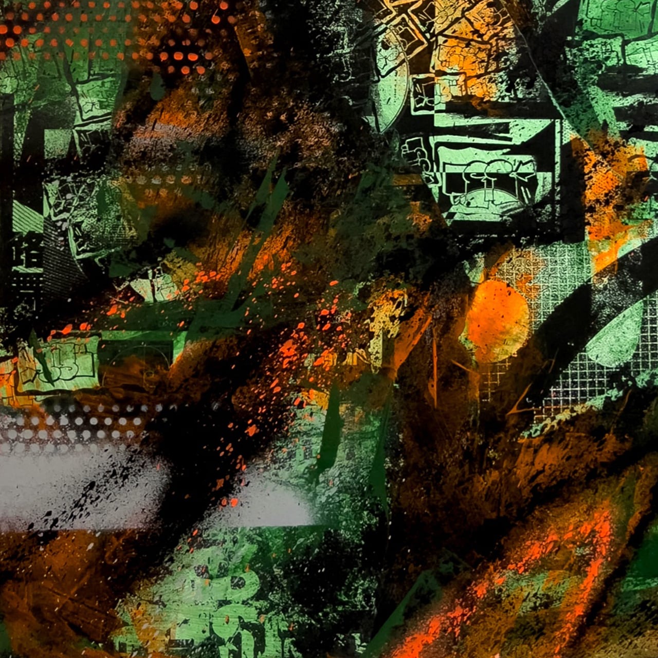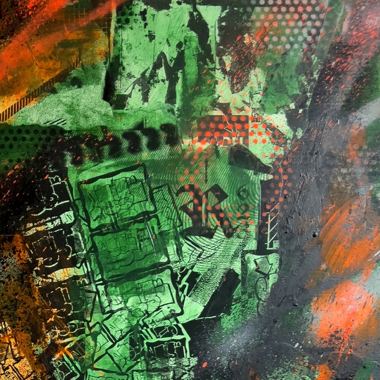 Acrylic paint & collage on wooden panel