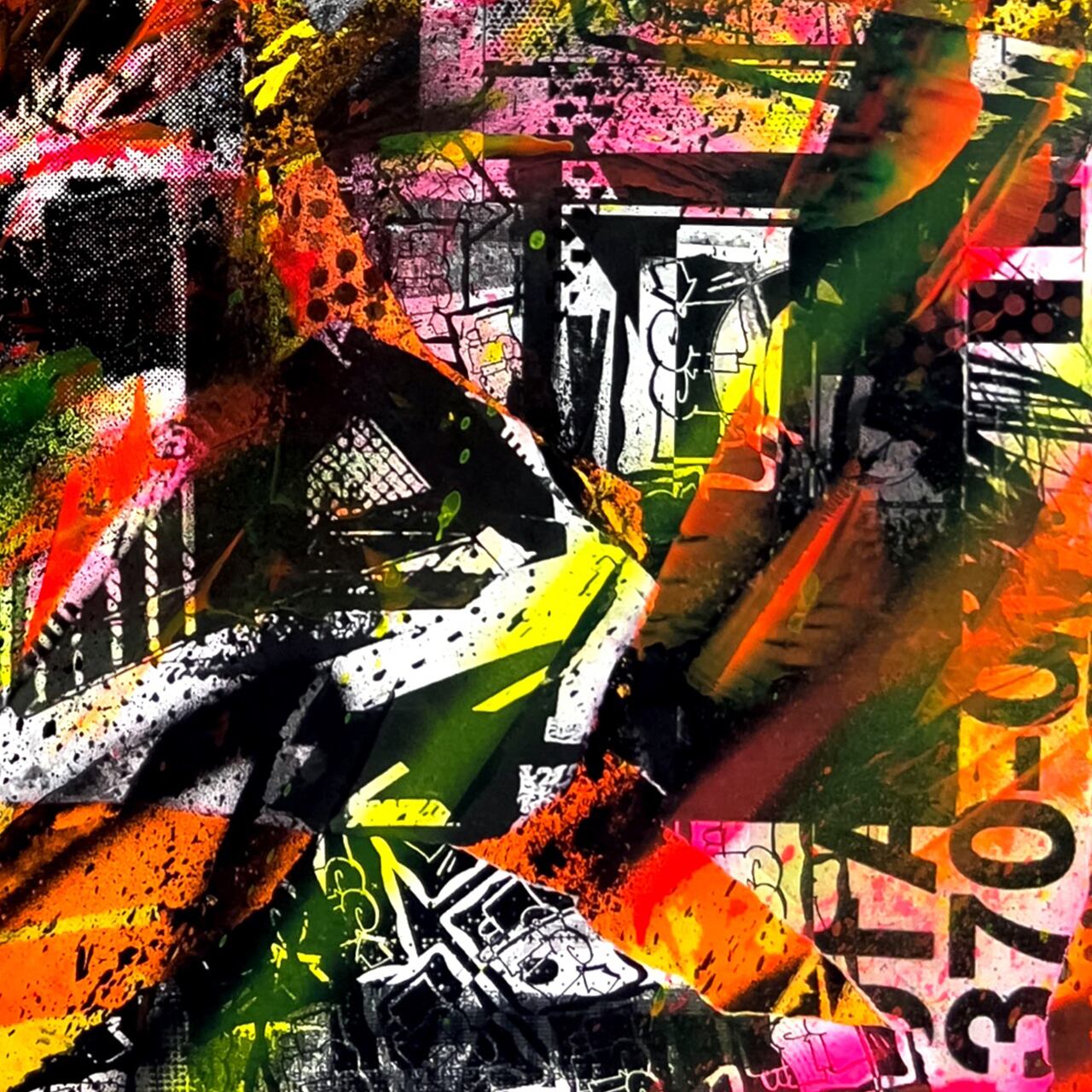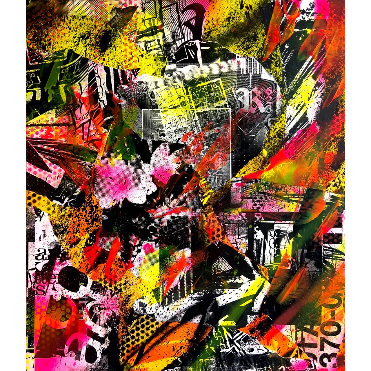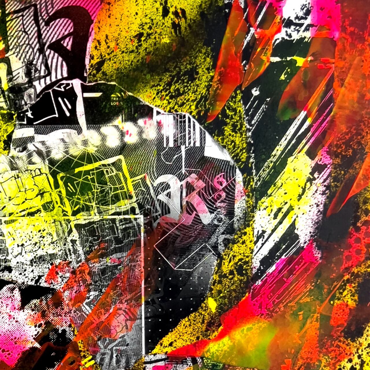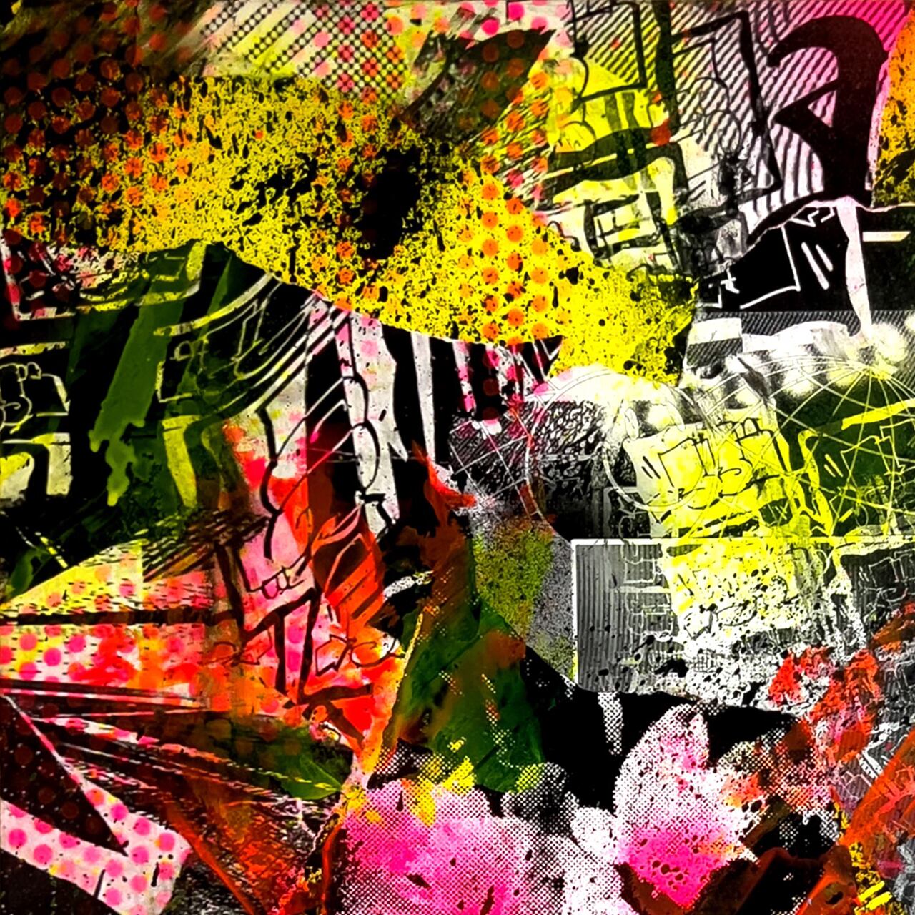 Acrylic paint & collage on wooden panel